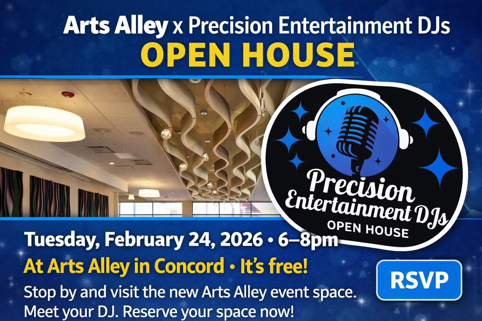 We’re opening the doors!Join us Tuesday, February 24 from 6–8PM for an open house with our preferred DJ partner, Precision Entertainment DJs. Tour the space, see it event-ready, and meet…